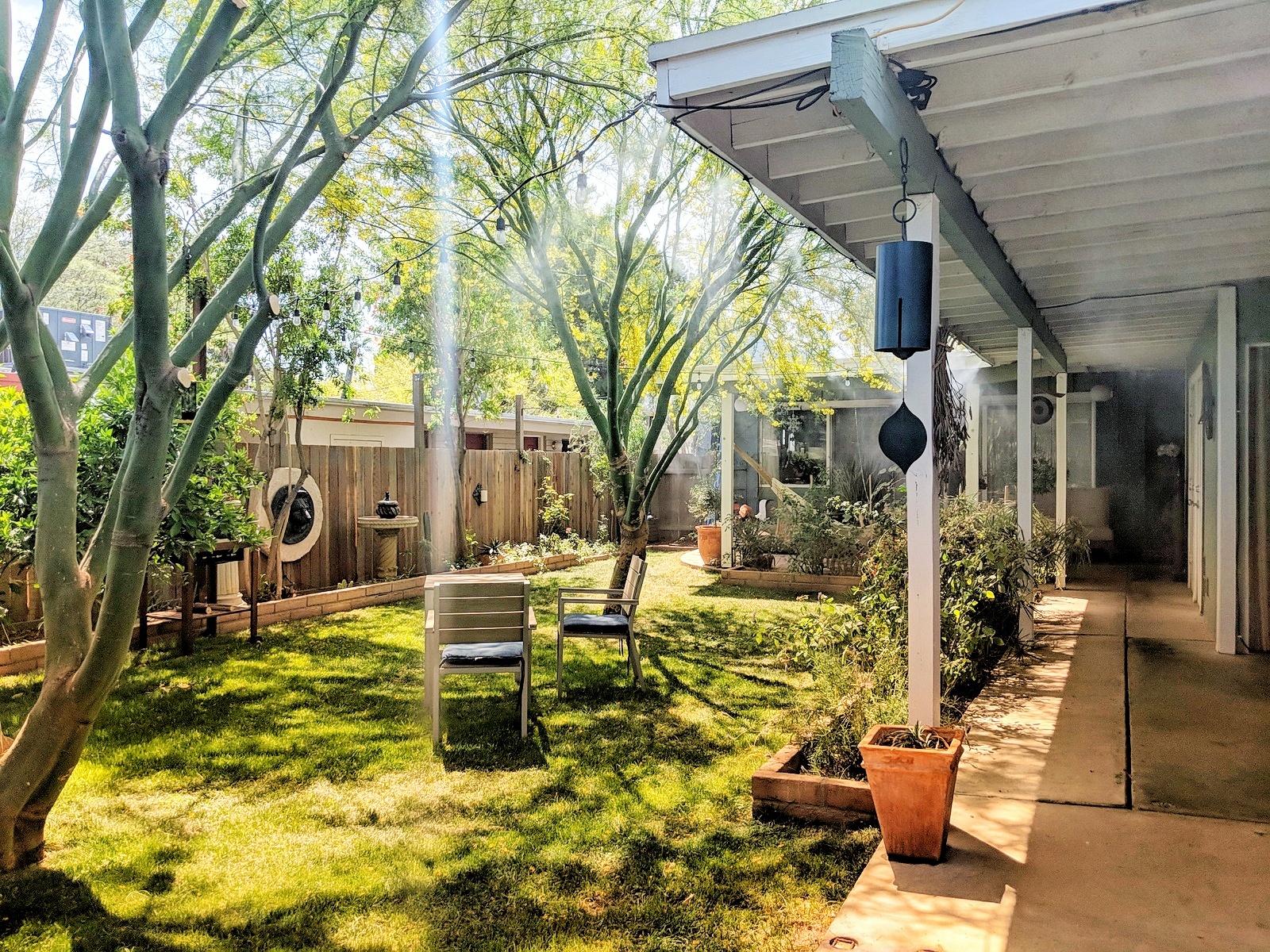 In just 1 year the Palo Verde trees matured, providing lots of shade, some of the walls were painted – see the blue. Look – way in the back, Rupik is there.