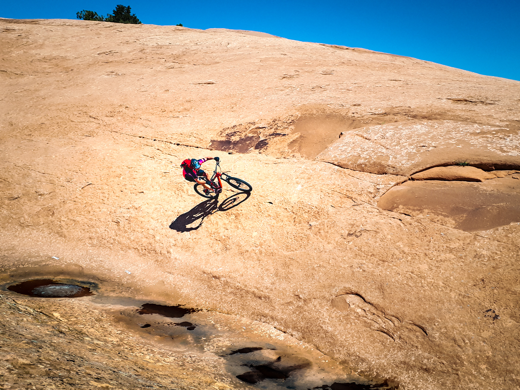 A wall ride on Slick Rock during another Sacred Rides trip in Moab, Utah. This is the 3rd time here.